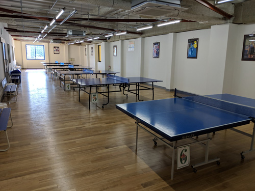 卓球の国際大会が開催可能なアリーナに50台を超える卓球台を設置し、300人あまりの卓球愛好者が参加する月例の卓球リーグ戦に出場しています。 新築して2~3年の観客席も申し分ない素晴らしい施設です。